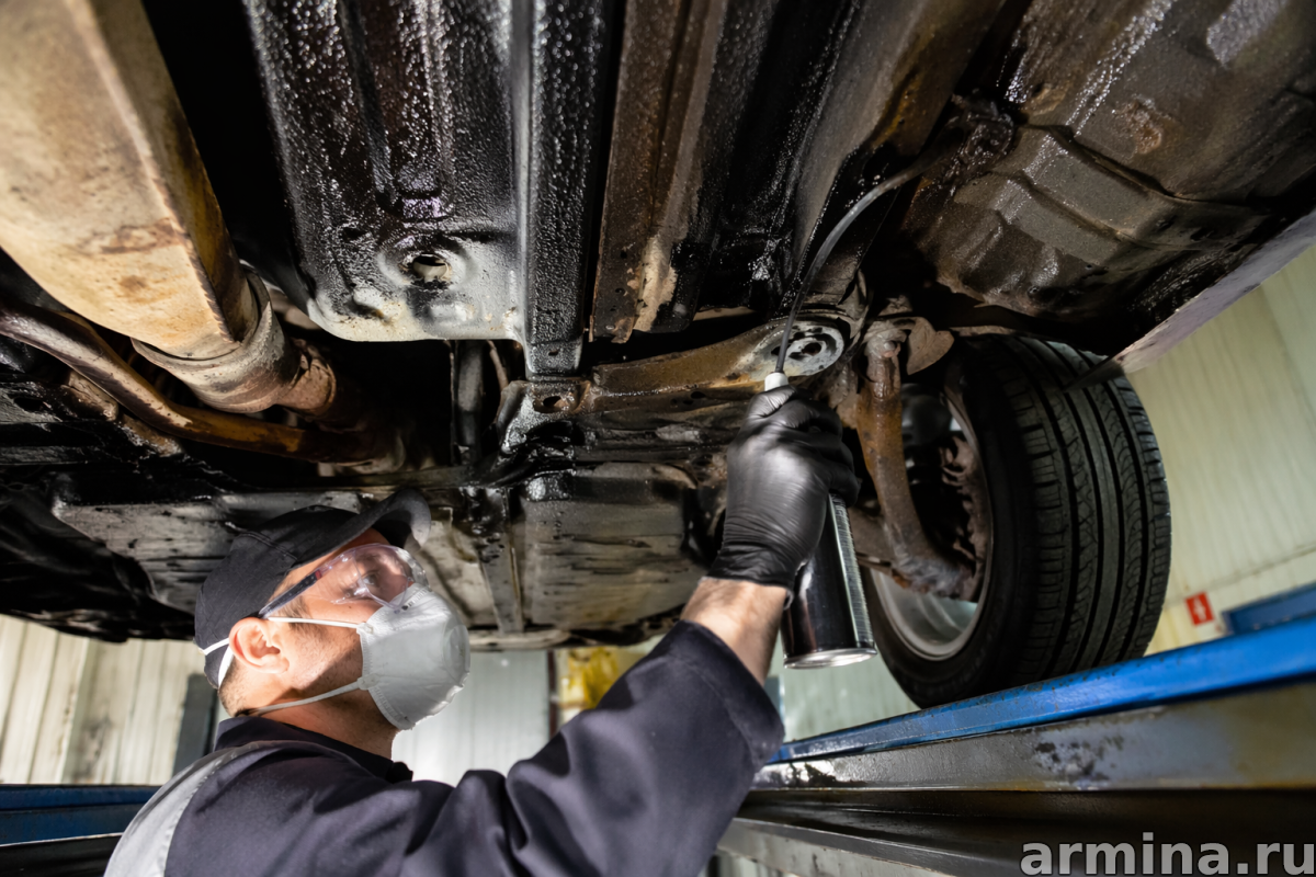 Перед началом работ желательно заранее подготовить всё необходимое. Это сэкономит время и позволит провести обработку днища автомобиля более аккуратно.