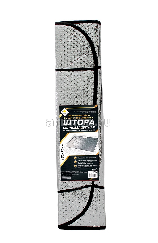Штора солнцезащитная под лобовое стекло "ГЛАВДОР" GL-907 металлизир. фольга, серебро, 150х70 см /50 - купить в интернет-магазине Армина