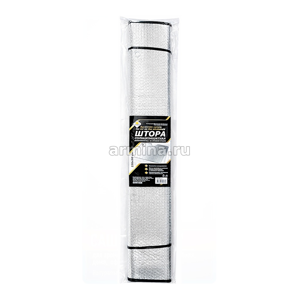 Штора солнцезащитная под лобовое стекло, металлизированная, фольга, серебро, 150х90 см. Предотвращает нагрев воздуха в салоне при нахождении автомобиля на солнце. Предохраняет приборную панель от нагрева, выцветания и растрескивания.