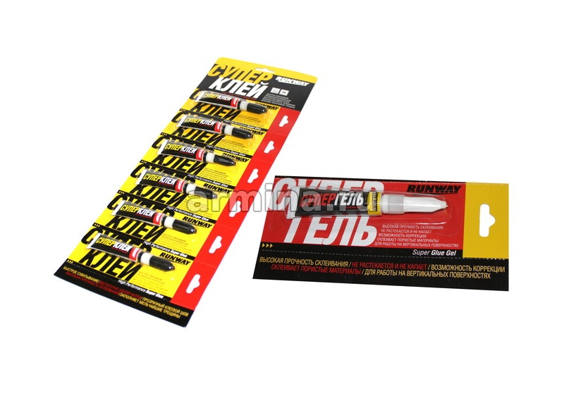 Однокомпонентный супер клей RUNWAY на основе этилцианакрилата с добавлением геля, предназначен для быстрого склеивания различных материалов.