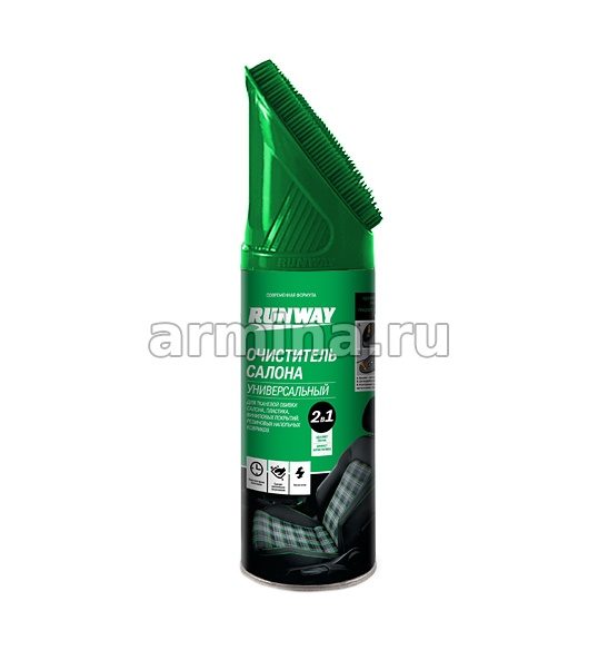 Универсальный очиститель салона RUNWAY применяется для ткани, обивки сидений и дверей, ремней безопасности, виниловых покрытий, панелей приборов, молдингов и даже резиновых и тканевых напольных ковриков. Благодаря компоненту - активная пена - легко удаляет даже застарелую грязь с обивки салона и пластиковых деталей дверей, потолка и люка. Придает материалам антистатические свойства.