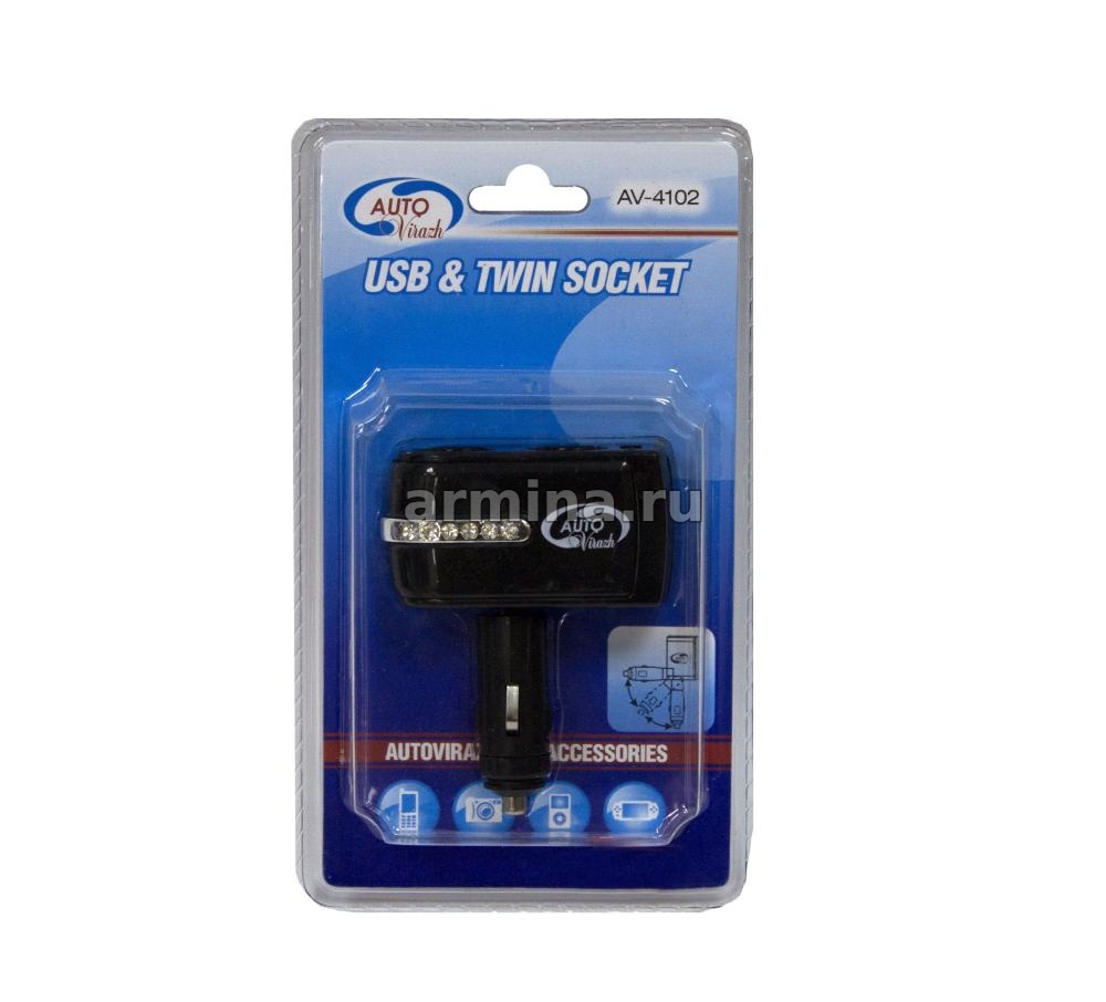 Разветвитель электропитания от прикуривателя "AUTOVIRAZH" AV-4102 на 2 гнезда /100 - купить в интернет-магазине Армина