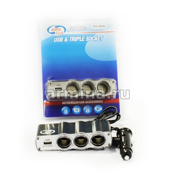 Разветвитель электропитания от прикуривателя "AUTOVIRAZH" AV-4103 на 3 гнезда /100 - купить в интернет-магазине Армина