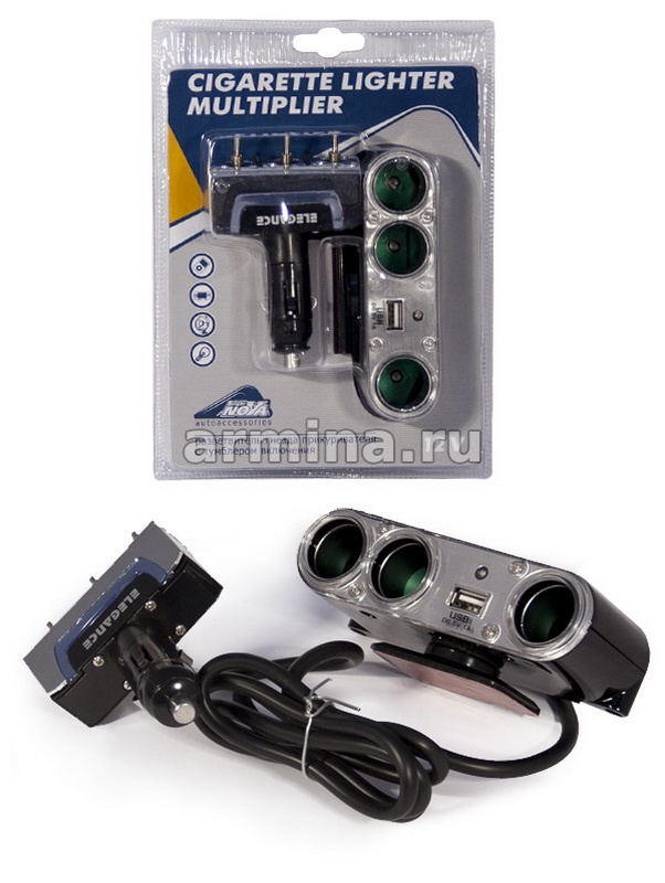 Разветвитель электропитания от прикуривателя "Nova Bright" 3 гнезда,1USB, подсветка, 12В (39890) /30 - купить в интернет-магазине Армина