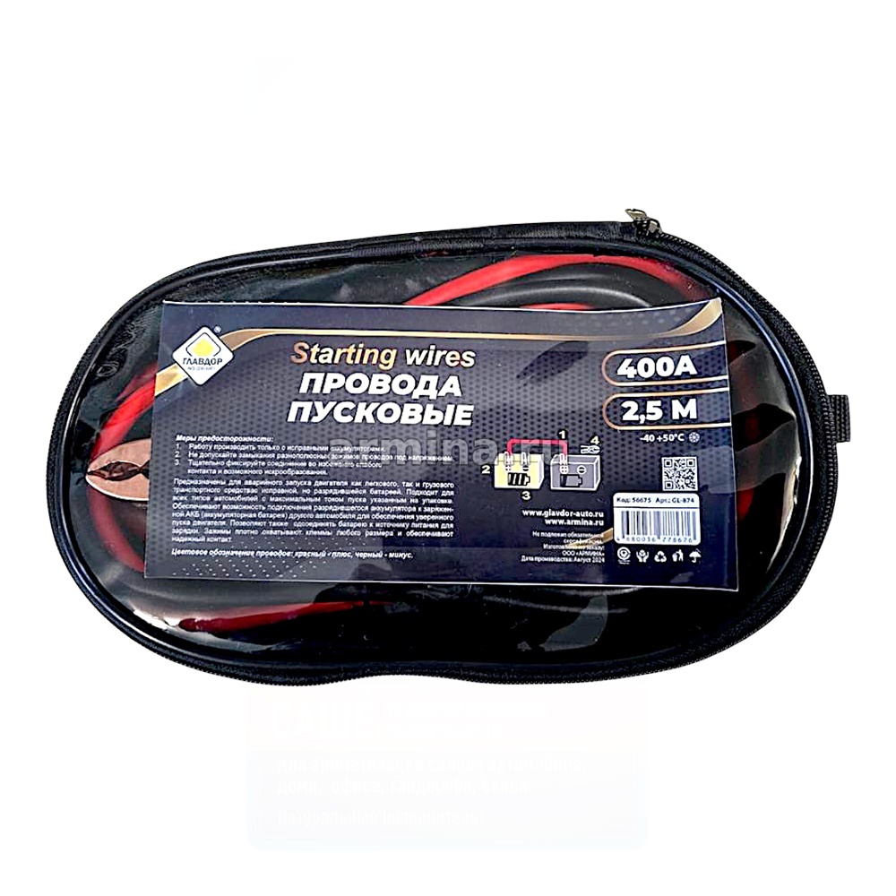 Провода пусковые 400А, 2,5 м, черная-красная обмотка, в сумке