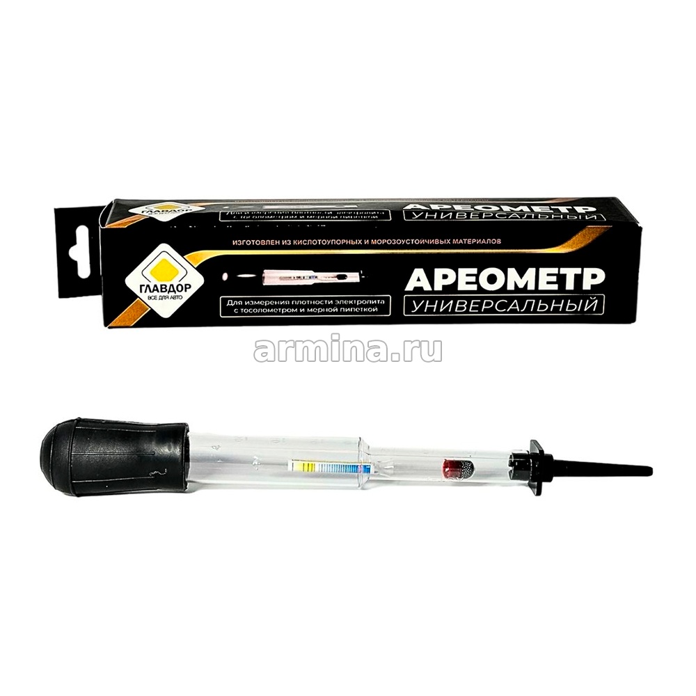 Универсальный ареометр для измерения плотности электролита с тосоломером и мерной пипеткой. Изготовлен из кислотоупорных и морозостойких материалов.