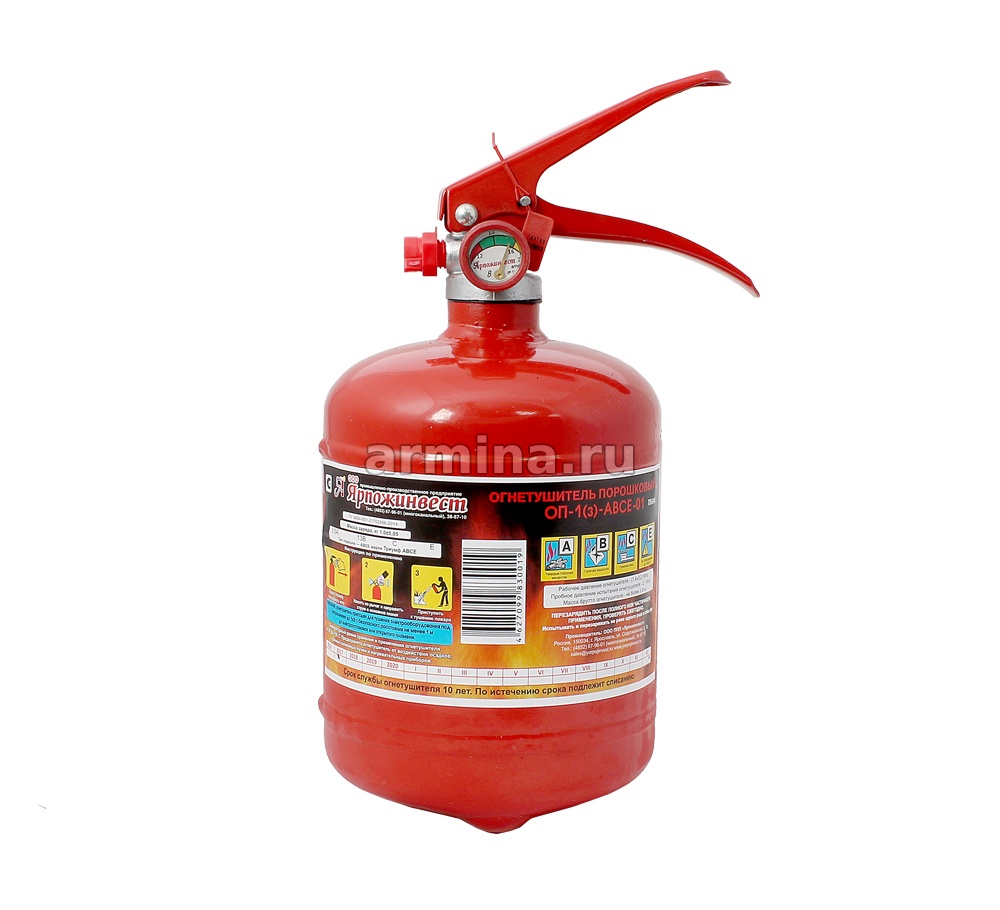 Порошковый, для тушения твердых, жидких и газообразных горючих веществ, а также электроустановок.