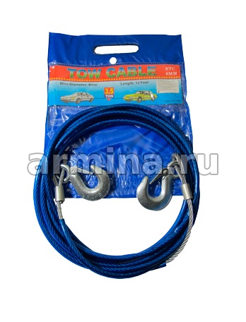 Трос буксировочный металлический в оплетке 8 мм х 4 м, 2 крюка /30 - купить в интернет-магазине Армина