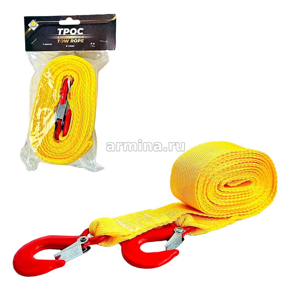 Максимальная допустимая масса буксируемого автомобиля - 5 тонн, Предел прочности на разрыв не менее 24500Н,