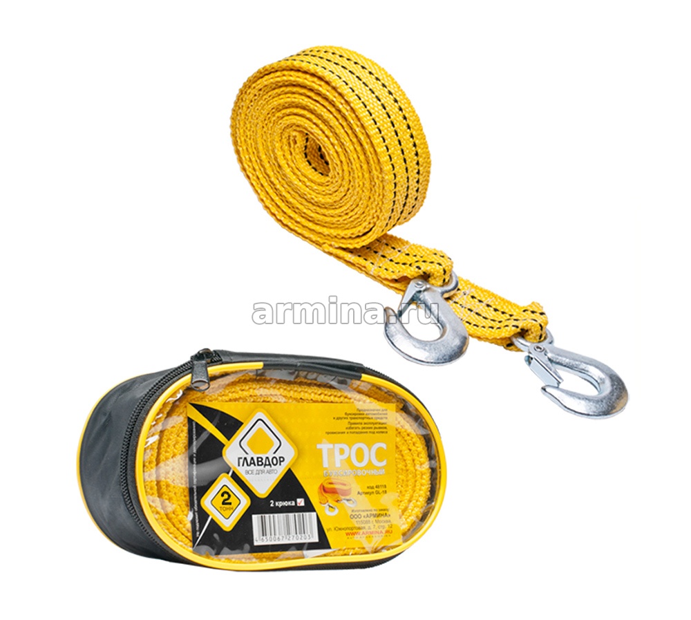 Трос буксировочный "ГЛАВДОР" GL-16, 2 т х 5 м, 2 крюка, в сумке /30 - купить в интернет-магазине Армина