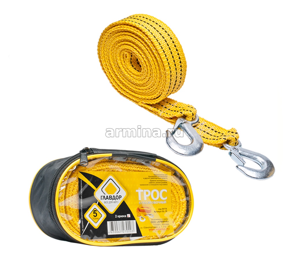 Максимальная допустимая масса буксируемого автомобиля - 5 тонн, Предел прочности на разрыв не менее 24500Н,