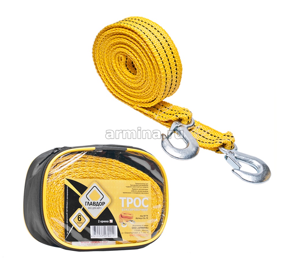 Трос буксировочный "ГЛАВДОР" GL-19, 6 т х 5 м, 2 крюка, в сумке /25 - купить в интернет-магазине Армина