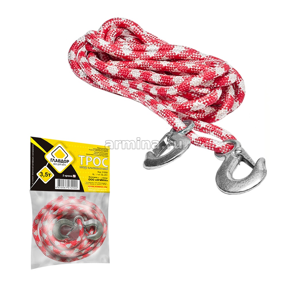 Трос-шнур альпинистский "ГЛАВДОР" GL-251 3,5 т х 12 мм, 2 крюка /20 - купить в интернет-магазине Армина