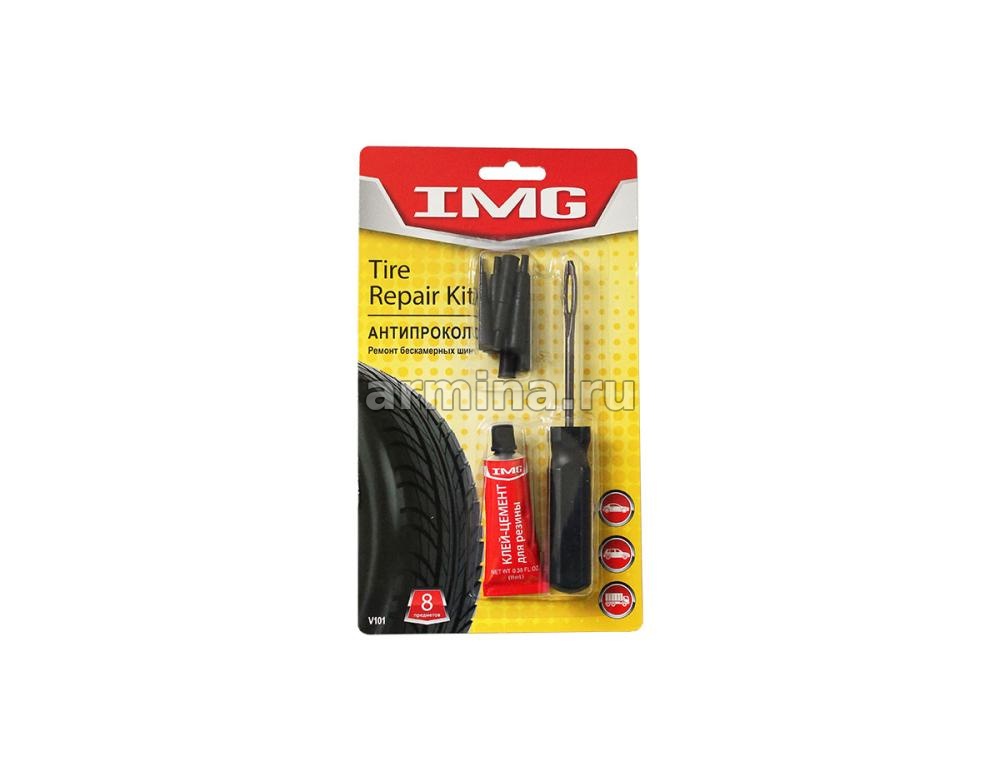 Набор для ремонта бескамерных шин "IMG" V-101 (шило, клей, 6 резиновых вставок) /6 - купить в интернет-магазине Армина