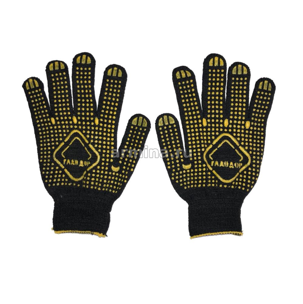 Перчатки х/б из 4-х ниток, хлопок с ПВХ черные, в точку, 23 см