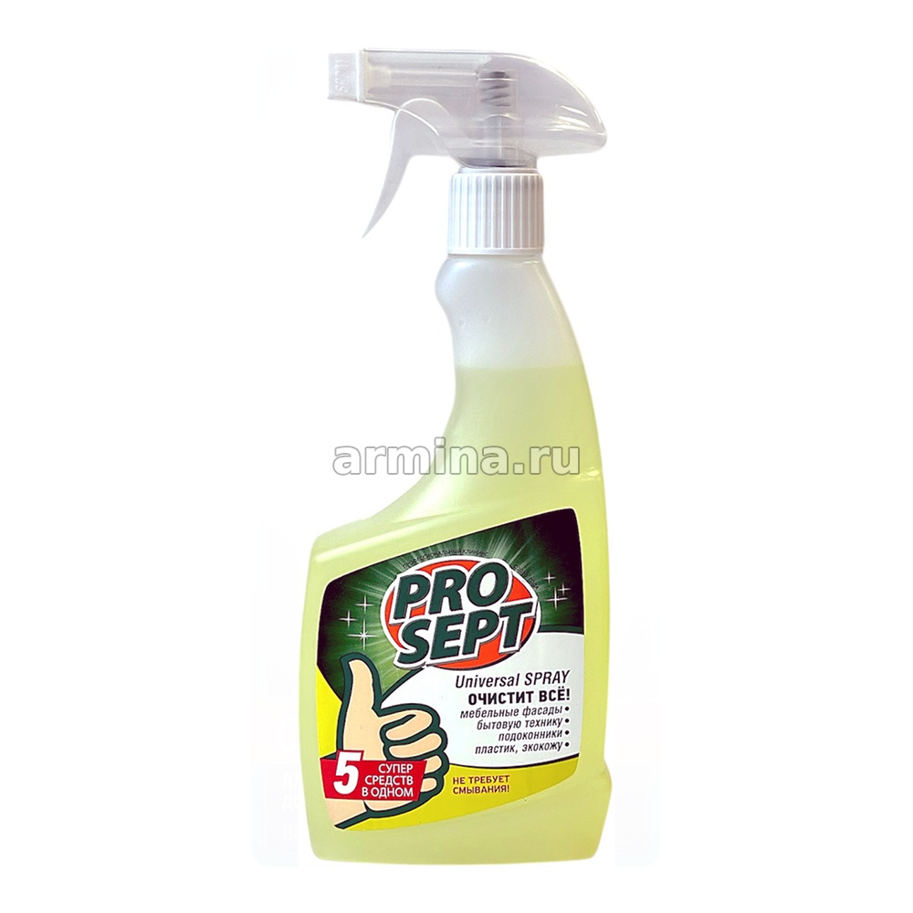 Universal Spray – универсальный моющий спрей с антистатическим эффектом. Очищает любые поверхности от органических загрязнений, следов жира, масла, косметики, чернил и пасты, клейкой ленты и клея. Отбеливает пластик. Препятствует оседанию пыли. Не требует смывания. Не оставляет разводов на поверхностях. Применяется для поверхностей: ламинированных, пластиковых, линолеума, хрустальных, металлических (нержавеющей и хромированной стали), стеклянных, зеркальных, керамических, окрашенных деревянных, мрамора и гранита.