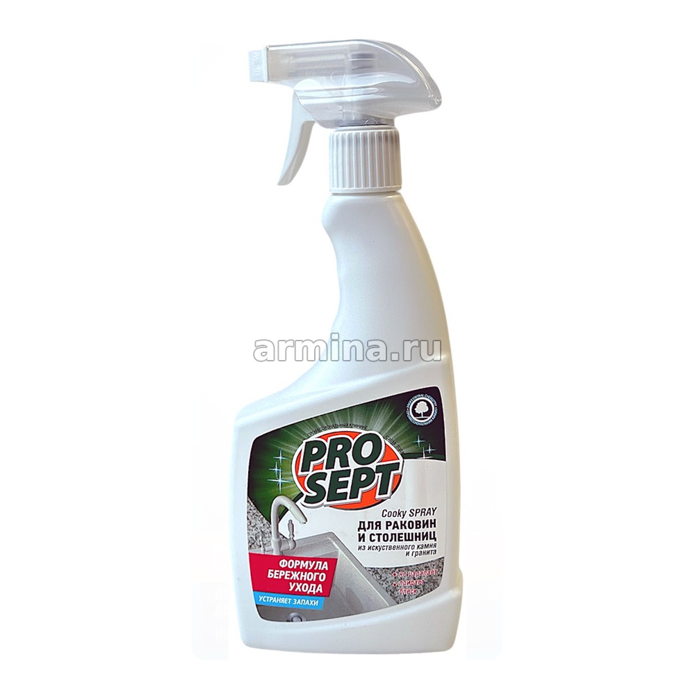 Cooky Spray – спрей для мытья раковин и столешниц из искусственного камня и гранита. Мягко очищает, не царапая поверхность. Удаляет известковый налет. Возвращает блеск. Не оставляет разводов. Не содержит кислот и абразивов, разрушающих материал. Средство для очистки любых видов поверхностей из гранита и искусственного камня (акрил, кварц, жидкий камень и др.).